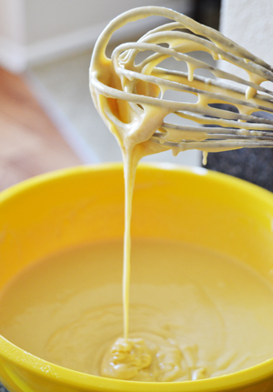 Whisk again until batter is completely smooth. Carefully pour batter into your empty bottle. I managed to do it without making a mess! No pictures. 😉