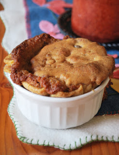Prepare the ramekin dishes by lining each with your favorite pie crust; line them loosely, and leave the edges free-form.